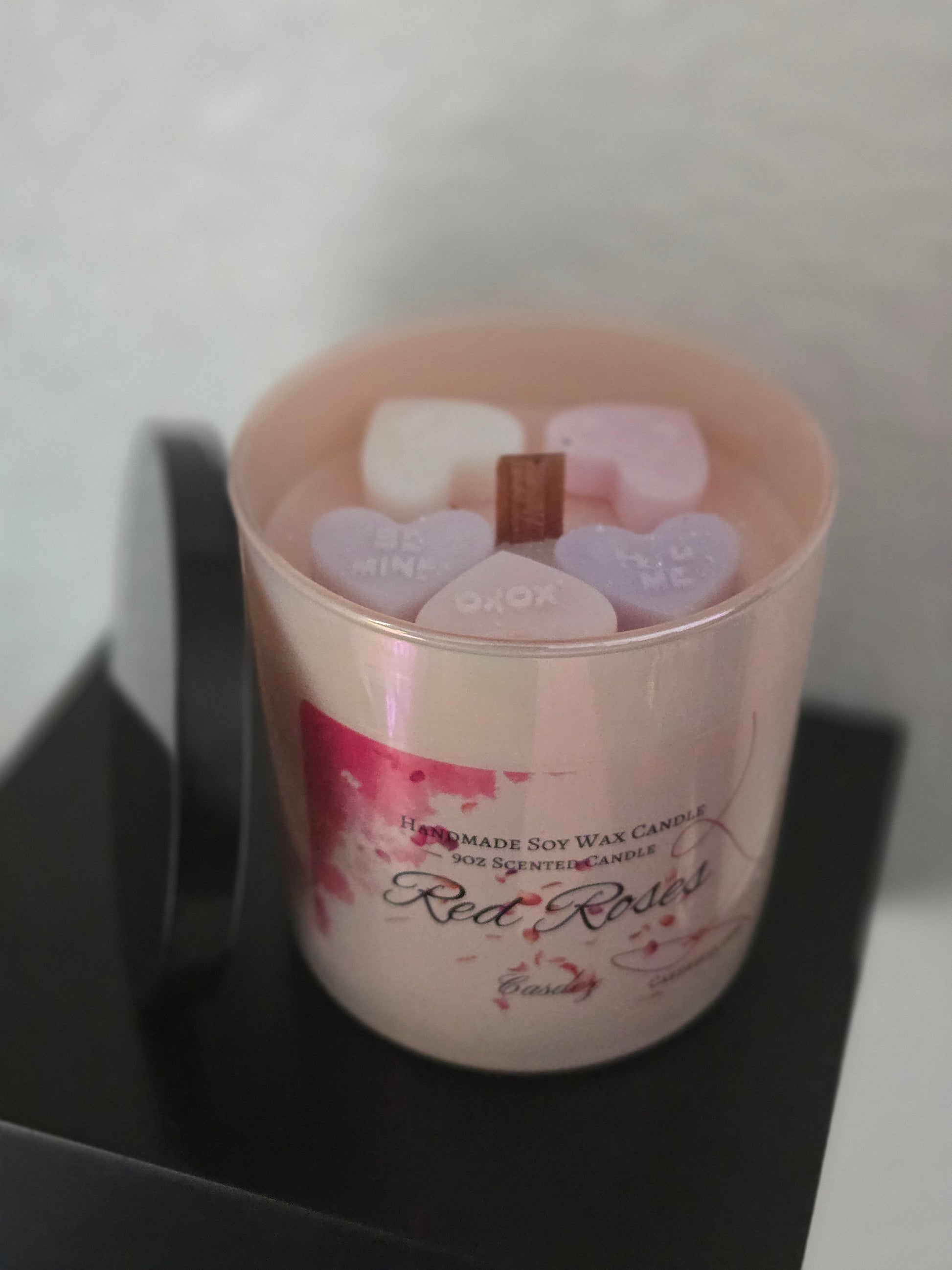 🌹 Fall head over heels for our Red Roses soy candle! This charming creation combines eco-friendly soy wax in a gorgeous container with a crackling wood wick that brings the ambiance. Crowned with precious wax hearts, it's a delightful decoration and mood-setter all in one. Perfect for sprinkling a little love into your home or surprising someone special. 💖 Let the romance bloom! 🔥✨